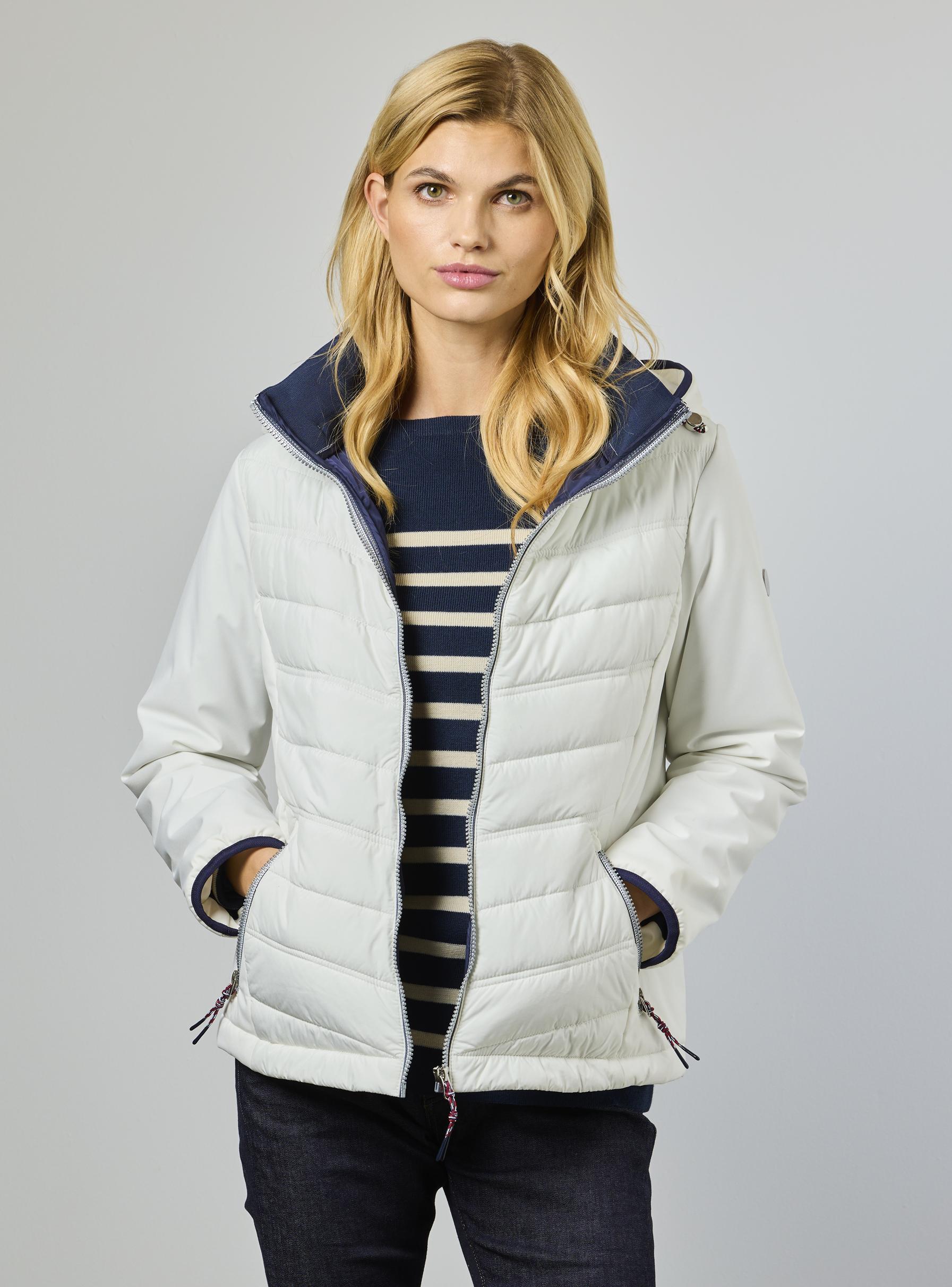 Takki on kevyesti topattu, siinä on irroitettava huppu ja vetoketjutaskut.
